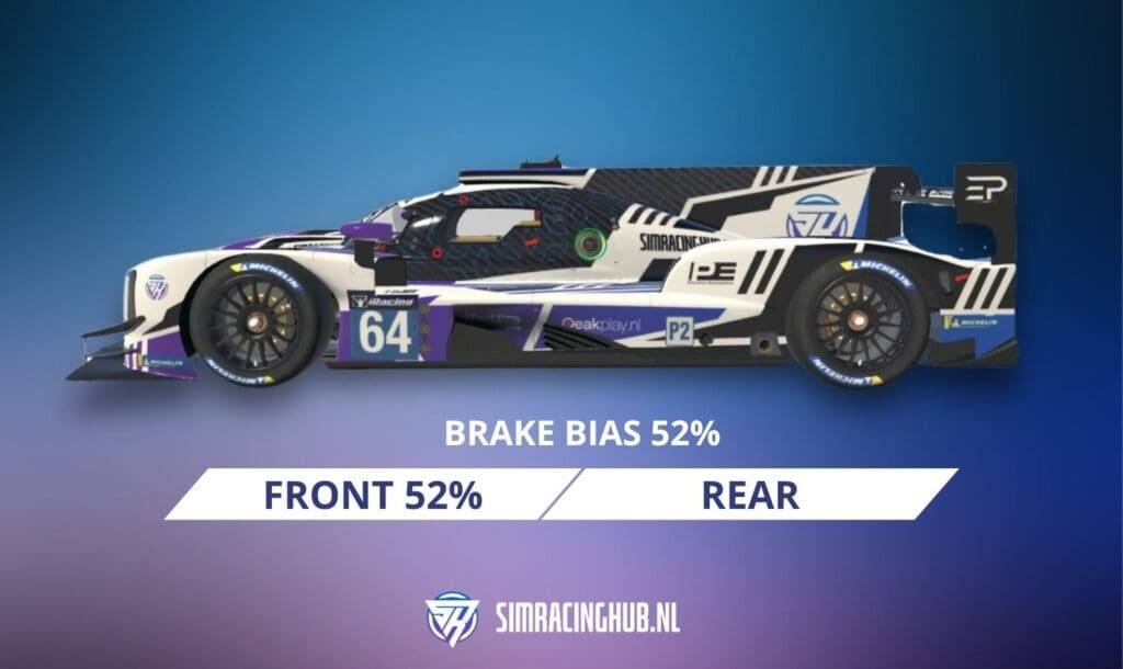 Deze auto’s zijn extreem gevoelig voor aero en gewichtsverdeling. Bij lage snelheid, waar downforce verdwijnt, kan een iets te agressieve bias naar achteren zorgen voor instabiliteit. Maar op hoge snelheid kun je juist profiteren van meer rear bias om rotatie op te wekken in doordraaiers of snelle entries. Hier is brake bias een instrument dat je bijna bocht per bocht moet leren gebruiken. Prototypes straffen fouten direct af, dus elke klik telt.