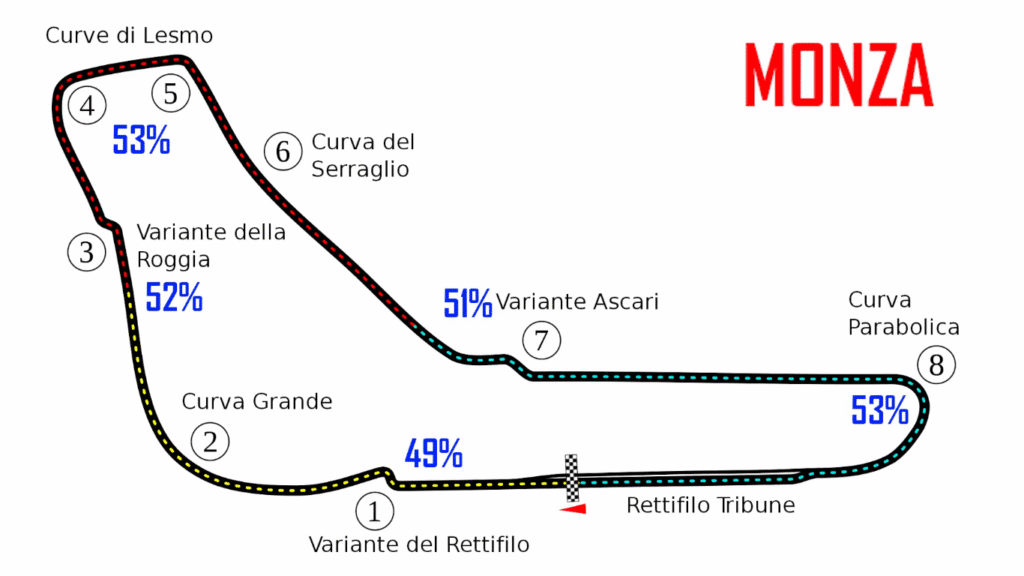 Op circuits zoals Imola of Zandvoort, waar trail braking meerdere keren per ronde voorkomt, loont het om iets achterwaartser te remmen dan je standaard zou doen. Experimenteer per bocht en voel waar de sweet spot zit: precies genoeg rotatie zonder het risico op instabiliteit. Het verschil zit vaak in nuances van 0.5%.