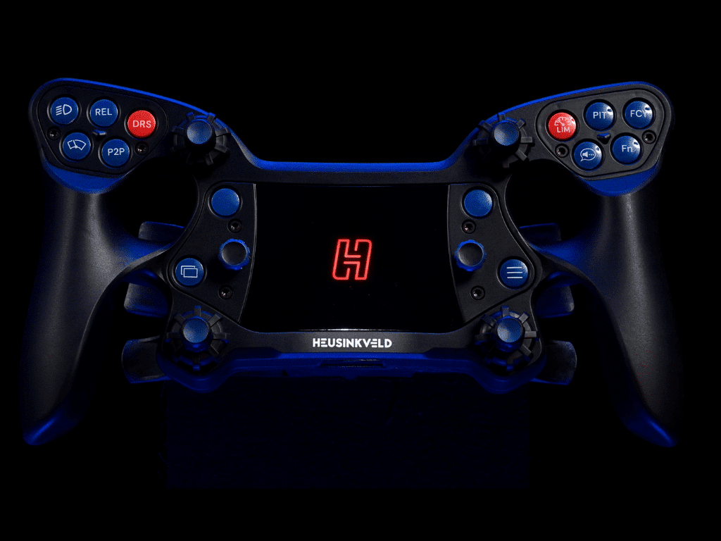 Einer der Punkte, der mir weniger gut gefallen hat, ist die prominente Präsenz des Heusinkveld-Logos in der Mitte des Lenkers. Es nimmt optisch viel Platz ein und wirkt wie eine verpasste Gelegenheit: Warum nicht eine Ganganzeige, eine zusätzliche Displayfunktion oder eine SimHub-Integration an dieser Stelle?
