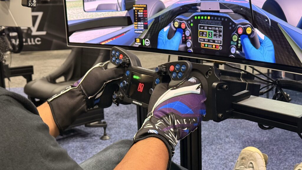 Während der Sim Gaming Expo in Chicago Ich hatte die Gelegenheit, das Heusinkveld One persönlich zu sehen und es ausgiebig zu testen. Mein erster Eindruck war erstaunlich: Dies ist eindeutig kein Lenkrad, das versucht, eine exakte Nachbildung eines Formel-1- oder GT-Lenkrads zu sein. Es wurde für Sim-Racer entwickelt, mit dem Sim im Hinterkopf. Und das merkt man an allem. Auf jeden Fall sieht das Lenkrad markant und futuristisch aus, mit einem ganz eigenen Charakter.