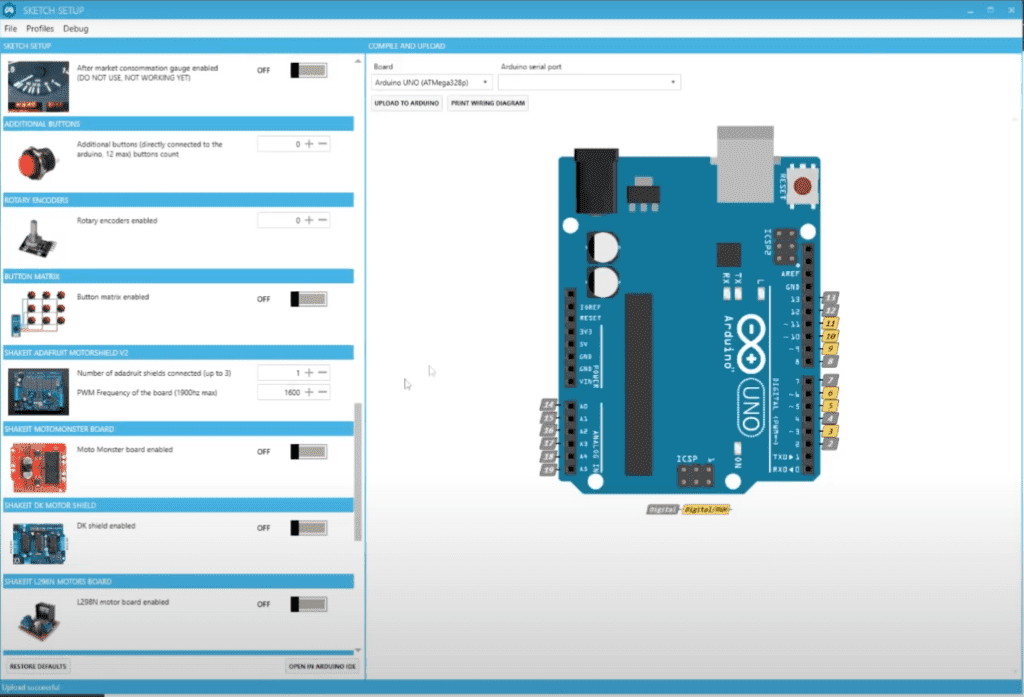 Selecteer in het rechtermenu de juiste Arduino Com Port en het type board (Arduino Uno) en klik op ‘Upload to Arduino’. Wacht dit proces even af en voilà, je hebt met succes jouw Arduino board geconfigureerd.