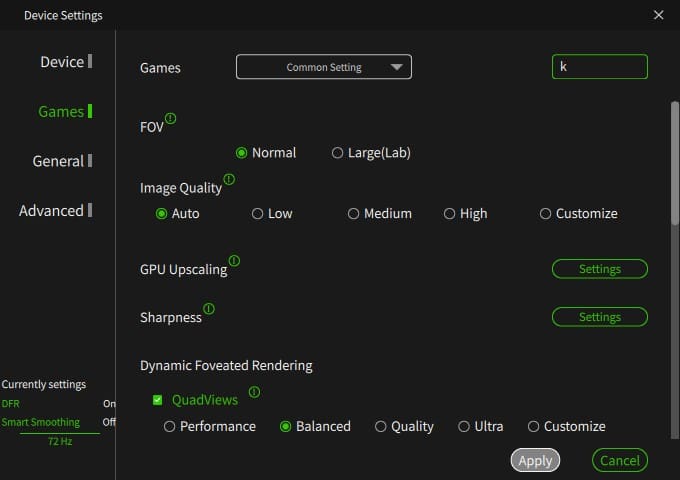 Als ervaren gebruiker weet ik inmiddels mijn weg wel te vinden, maar ik kan me voorstellen dat beginners snel verdwalen in de wirwar aan instellingen en sliders. Als je een beginner bent in VR – zoals ik – dan weet ik ook niet zo goed wat alle settings nu precies betekenen en wat het effect ervan is. Het voelt vaak als trial & error, en dat kan behoorlijk tijdrovend zijn. Zeker als je gewoon even snel een race wilt rijden.