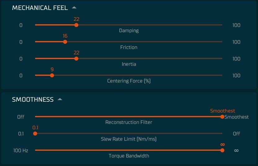 What sets Tuner apart is its combination of simplicity and depth. Beginners can get started with preset profiles (such as iRacing or ACC presets), while advanced users can fine-tune every parameter imaginable: from slew rate and damping to inertia and friction filters. All adjustments are applied in real-time, so you immediately feel what you are changing. This really works super well.
